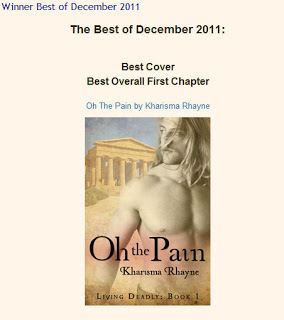 ..was won by Oh the Pain....Best Cover (Thank you Carl @ Rebel Ink Press) and best first chapter.Want to see it live?Click HERE