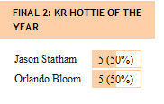 Ok my lovies....once again the 2011 hottie of the year was a tie. *sigh* Now, it's not fair if I pick the winner...so this is a speed vote....