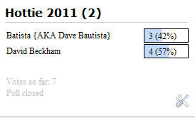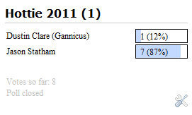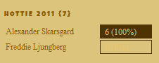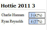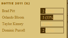 We've gone through round 1 of voting (and, as you can see, I've left December just as a voting month).So, please take a moment to vote in the polls to your left and help name the KR 2011 hottie of the year.