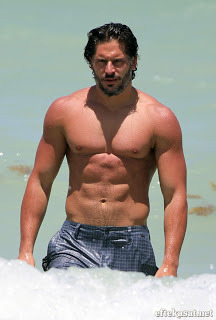 Welcome to the Hottie blog this week--Joe Manganiello. Now, I can't wrap my head around the whole "sleeping with something that grows fur and a tail and may have puppy breath" -- however, if I separate him from True Blood...I'd have to say he's damn fine.