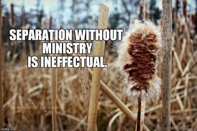That being said, what kind of Christian wants to be ineffectual? Therefore, I have to ask, are you separating from someone without ministering to them? I have seen many Christians caught up in a sinful lifestyle or making an unbiblical decision that will impact their lives without one single Christian stepping forward and talking to them about it, finding out if they understand what they are doing, asking them about their reasons for such a decision. Yet, I've seen some of these same Christians going mute toward them, stepping back, and having no contact or interaction when the door is clearly open to discuss the problem with the offender. This kind of response comes off only as a great big, Christian cold shoulder. One can only surmise that those who do this are "separating" when in fact, they are guilty of prideful, self-righteous arrogance, because it is left to the person being "separated" from to try and figure out why so-and-so isn't talking to them or taking part in their life event or acting stand-offish. And having watched this close up, I can tell you that most of the time the person being "separated" from is absolutely clueless. So they go on their way either wondering what the problem is or shrugging their shoulders without caring, because the relationship is broken -- not in a helpful way.