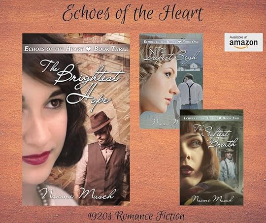 With that thought, I present to you The Brightest Hope , my third and final novel in the Echoes of the Heart series, set in post-WWI Wisconsin, 1924. Here's what two other authors of that time period say about the story: