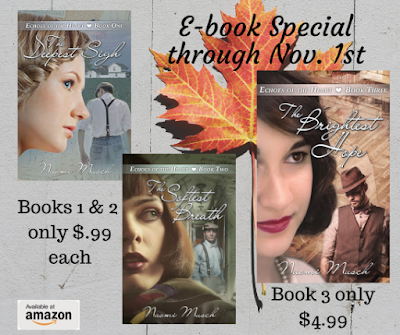 ~~~THANKFUL~~~I'm SO thankful for what modern medicine can do. I had a similar umbilical surgery years ago that felt way more invasive. Jeff and I always thank our doctors and nurses for using the gifts and talents God blessed them with along with their training to care for people. We try to encourage them and let them know their work is greatly appreciated. It's a great reminder that "every good gift and every perfect gift is from above, coming down from the Father of lights in whom there is no variation, nor shadow do to change" -James 1:17.~~~~~My publisher surprised me with this sale on Mist O'er the Voyageur . It's been a long time since they've offered this deal. It's a good time to send a few copies to friends. (Maybe you know someone else who's recuperating from surgery or illness.) The first two books in my Echoes of the Heart series are on sale too. Book Three just released in August and concludes the series with a big heart tug.