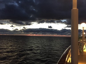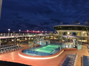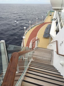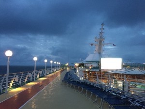 And my top “meeting a tall, dark stranger” experience came the morning I woke before 5 a.m. and stumbled up to deck ten to get some reading in before breakfast. Warm ocean breezes kept me company as I read from my iPad on a chaise lounge. Then suddenly, an interruption.