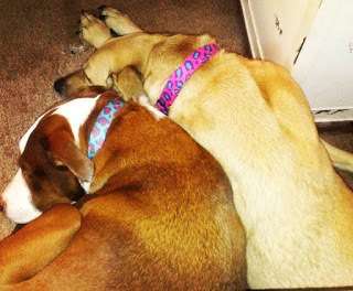 My two doggos! The blonde is Mindy. The brunette is Chunky. I was relaxing on the couch, minding my own business, when these two came over and started jockeying for position to sit in front of me. I tell you, they are the most jealous dogs. Whenever one gets affection, the other immediately comes running over to break it up. I know this by now, so I just let them fight it out. This is how they solved the problem, squeezing both their big selves into the little square in front of me. Silly fur babies.