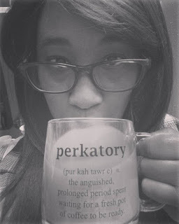 Coffee selfie number two! I usually take these every Monday. I figure since I'm addicted to buying coffee mugs (and guzzling coffee) I might as well show them off. This one is cool because it's clear (I don't know why that matters to my brain) and the little saying is clever. Good job coffee mug maker factory.