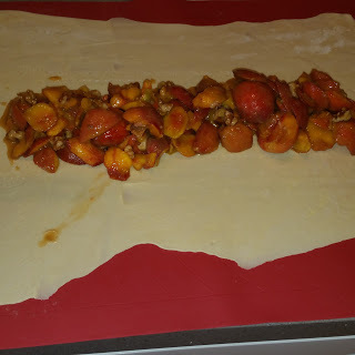 After that, I asked for ideas on what to make. Baked good seemed to be the number one recommendation but after all the peach peeling and chopping, I was too tired to deal with pie crust so I went for this strudel using puff pastry, which I had in my freezer. I cut down the sugar quite a bit so that it could be eaten with ice cream and not be too sweet. It turned out great!