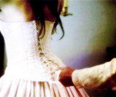 "Can you tie shoes "Well then you can tie a corset, can you help me?" She nodded at her back. A look passed through his eyes before his face became emotionless again. But he moved behind her.
