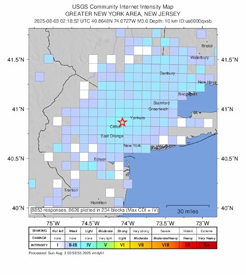 When it hit, my wife and I both said, “That’s an earthquake.” We’ve experienced many in California, and know the feel.