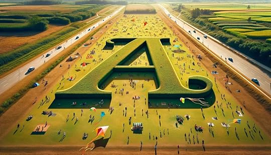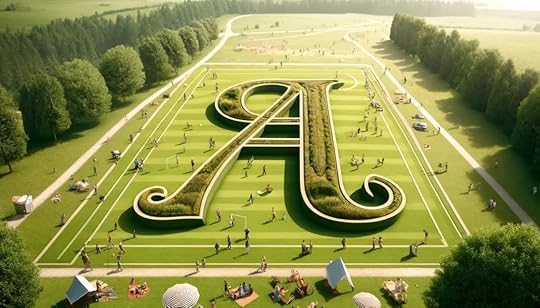 Here’s the illustration of a whimsical outdoor scene with a vast field shaped into the letters ‘A’ and ‘I’, where people are enjoying various activities, creating a cheerful and lively atmosphere.