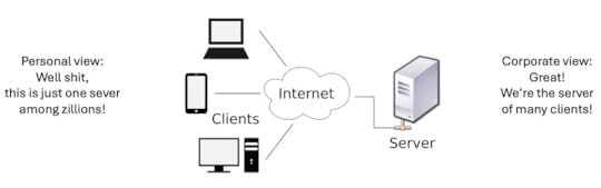 Alas, we all still are seats, eyeballs, end users, and consumers, and our reach still does not exceed corporate, government, and organizational grasp, because all of those entities operate their services on the client-server model. And, so long as nearly everyone believes that client-server is the only way to go, the fact that the Internet is end-to-end beneath everything done on it remains irrelevant. Nothing in any of these (and many other) efforts before and since has done anything to change the damned Internet of Accounts: