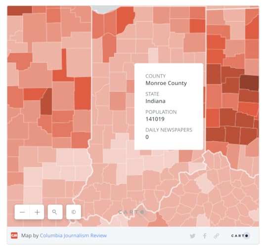 In 2017, Columbia Journalism Review produced an interactive map of America’s “news deserts.” One of them is Monroe County, most of which is Bloomington: