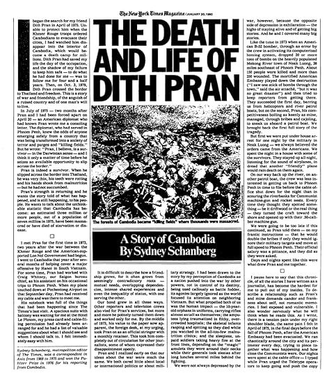In the opening paragraph, Sydney Schamberg writes, “This is a story of war and friendship, of the anguish of a ruined country and of one man’s will to live.” As human stories about genocides go, the only one that might top Dith Pran‘s is Anne Frank‘s. The new story was so compelling that four years later it became a huge movie: