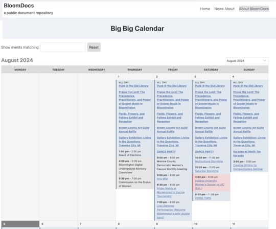 Every outfit Dave can find in the county that publishes a calendar and also has a feed is in there. They don’t need to do any more work than that. I suspect most don’t even know they syndicate their calendars automatically.
