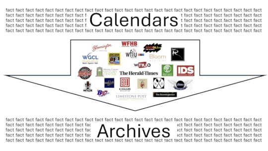 All the publishers, radio and TV stations, city and county institutions, podcasts, and blogs I show there (and visit in We Need Wide News and We Need Whole News) should have their own arrows that go from Future to Past, and from Calendars to Archives. And when news events happen, which they do all the time, and not on a schedule, those should flow into archives as well. We need to normalize those as much as we can.