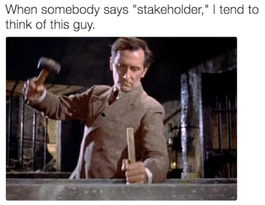 That’s Peter Cushing (familiar to younger folk as Grand Moff Tarkin in Star Wars) pounding a stake through the heart of Dracula in the 1958 movie that modeled every remake after it. Other variants of that caption and image followed, some posted on Twitter before it was bitten by Musk and turned into a zombie called X.