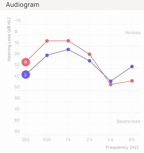 I’ve had my hearing tested at Costco three times: in 2019, 2021, and last month. Each test looked roughly like what you see in the audiogram above, which is a test I did in September with my new Apple AirPods Pro. (2nd Generation). I got those because they kinda work as hearing aids. (In “transparency” mode. If you have them, give it a try.) The main problem with the ‘pods is that they tell people I’m not listening to them. Also, they tend to fall out of my head.