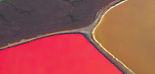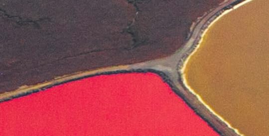 A series microscopic life forms of different kinds and colors predominate to in series as the water evaporates. First comes green algae. Next brine shrimp predominate, turning the pond orange. Next, dunaliella salina, a micro-algae containing high amounts of beta-carotene (itself with high commercial value), predominates, turning the water red. Other organisms can also change the hue of each pond. The full range of colors include red, green, orange and yellow, brown and blue. Finally, when the water is evaporated, the white of salt alone remains. This is harvested with machines, and the process repeats.