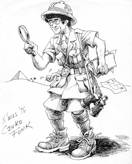 It seems fitting that among old medical records I found this portrait of , my comic persona on radio and in print back in North Carolina, forty-five years ago. The artist is Alex Funk, whose nickname at the time was Czuko (pronounced “Chuck-o”). Alex is an artist, techie and (now literally) old friend of high excellence on all counts.