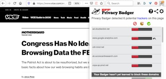 That one is from Vice, by the way. Here’s how the top story on Vice’s front page looks in Belgium (though a VPN), with Privacy Badger looking for trackers: