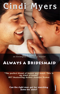 Yep, it's still chucking it down with rain here in the UK, so I'm skipping off for coffee with the Minxes of Romance today (I would love to see you there!) and fellow Indulgence author Cindi Myers is here to tell you a bit about her brand new super scrummy release Always A Bridesmaid!