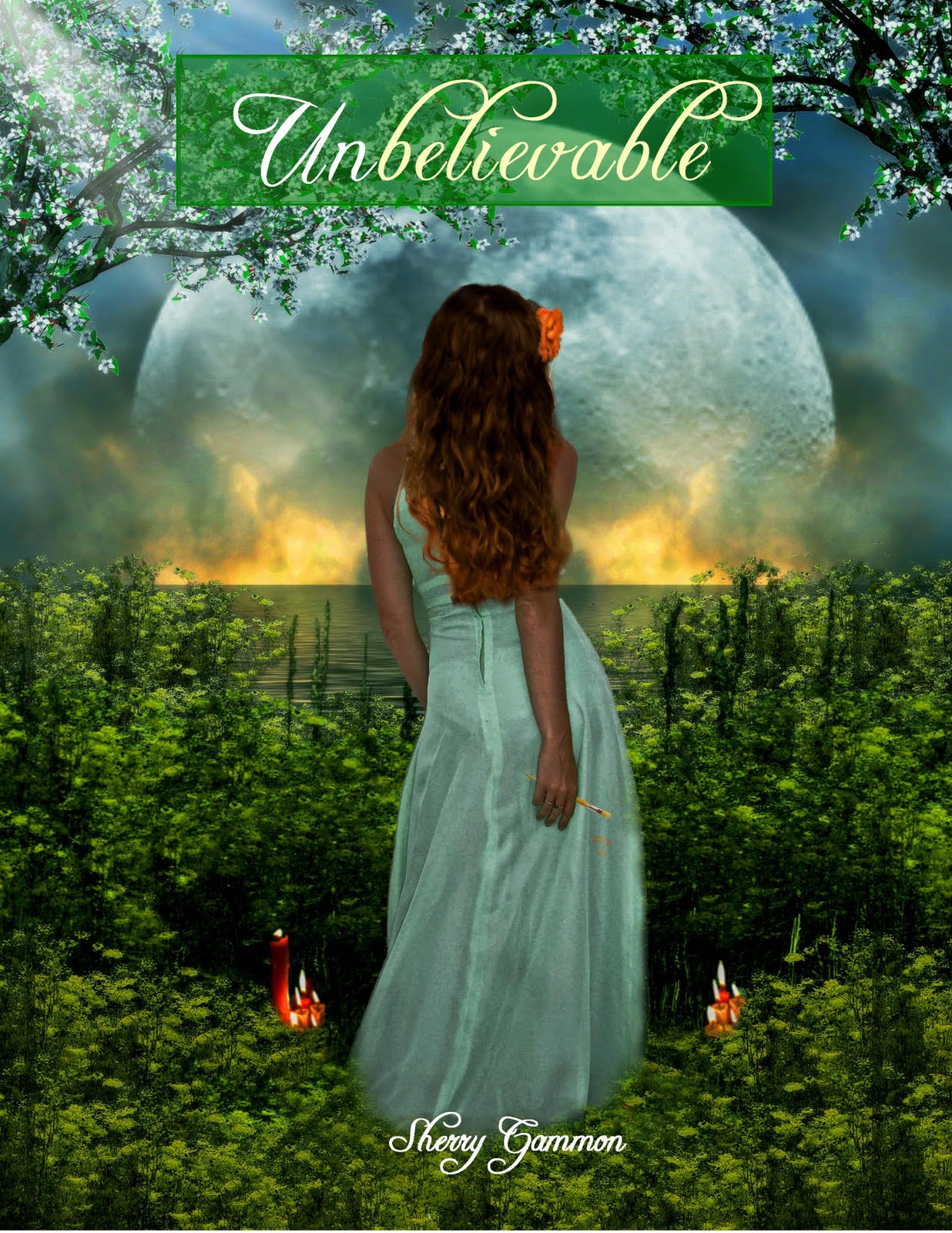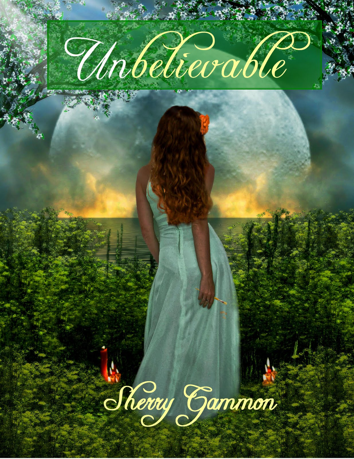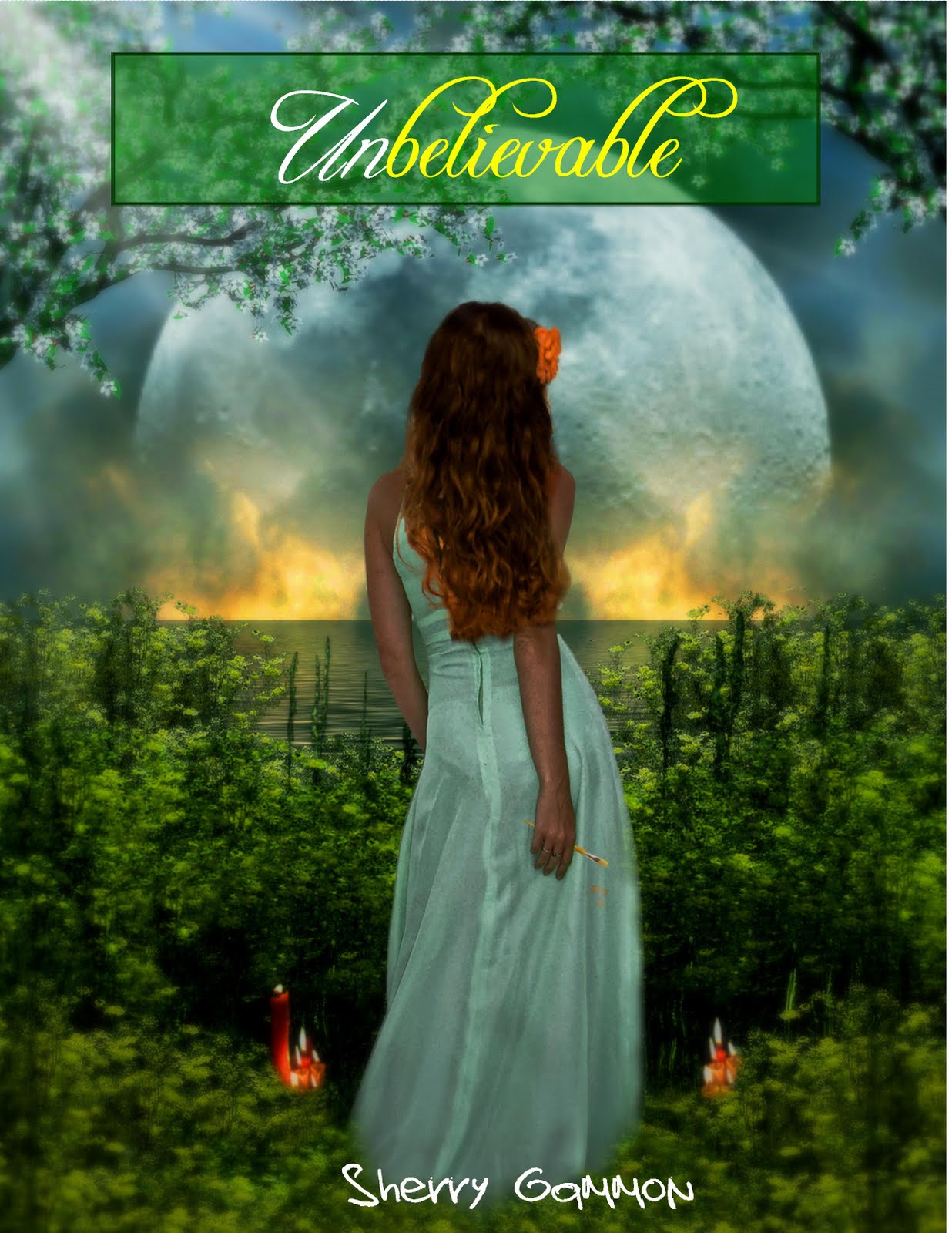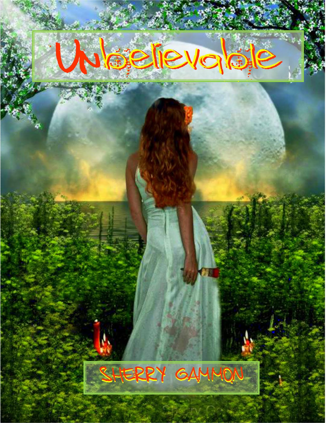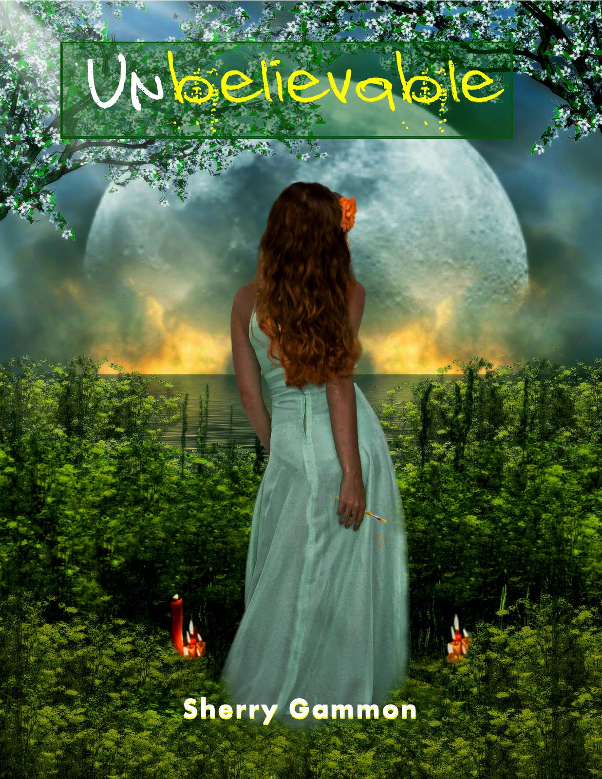 Okay, this is not the real winner, but it is close. When I originally had Paul make this cover, I wanted to do the words in white with a green background, as did Paul. But after I saw the yellow paint on the girl's paintbrush, I decided the word BELIEVABLE needed to be yellow. Most of you didn't like the yellow one, so I compromised and did it a very PALE yellow..which I like even better than the bright yellow. Remember, the Dreser's are deceitful, so wouldn't the sister be also... hence her trying to highlight the word believable and not the UN part! Hope you like it!