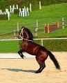 Capriole:The horse hops forward body parallel to the ground and the horse kicks out behind it.