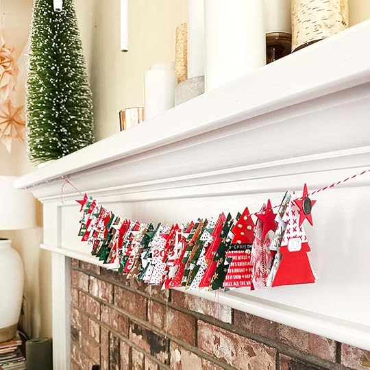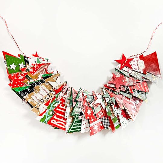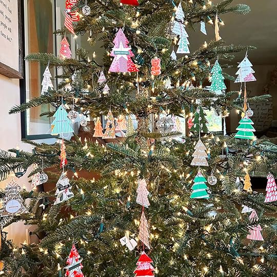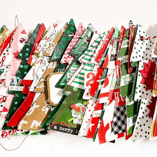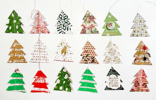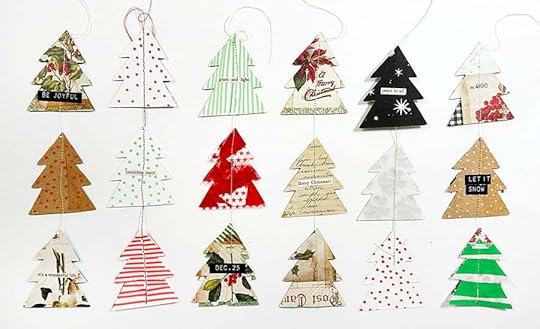 I wrapped up my mixed media tree project yesterday and got them all added to my Christmas tree that I put up this past week. We do still have some cardstock die cut tree packs in stock if you'd like to make something similar. I think this could be a fun craft project to do with kids too! As you'll see below I played around with using the trees to make a garland but ultimately decided to add them to my tree this year and then string them together as a garland for future seasons.