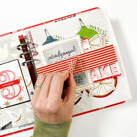 Red Star 6x8 Album December Daily® Main Kit (digital available) December Daily® Die Cut Pages (digital available - includes Studio file) December Daily® Chipboard Set (digital available) December Daily® 10x8 Paper Pack (digital available) December Daily® 3x8 Transapency + Journal Card Set 6x8 Page Attacher Red Line Tape Red/Cream Ribbon May Arts Red Scallop Adhesive Ribbon (May Arts has some that's not red here) Magnets Cream Washi Tape (check out the various Christmas Washi Tape available at Scrapbook.com) Staedtler Lumocolor Pen Additional basics via my Amazon Storefront