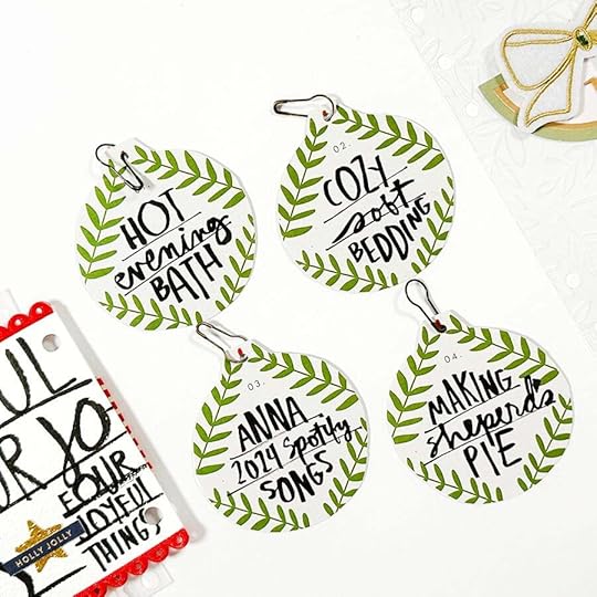 I cut up the Prompt Paper to fit on the back of each of my ornaments. I then used the Brush Pen to add one joyful thing to each of the four ornaments.
