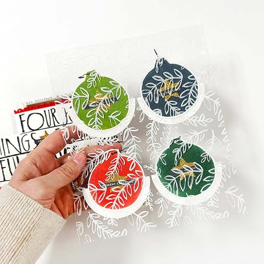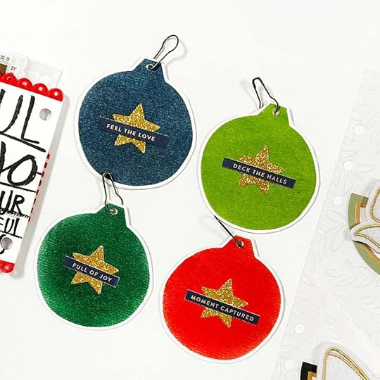 I added a phrase strip to each of the glitter stars on the ornaments.