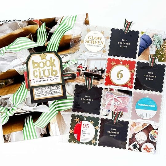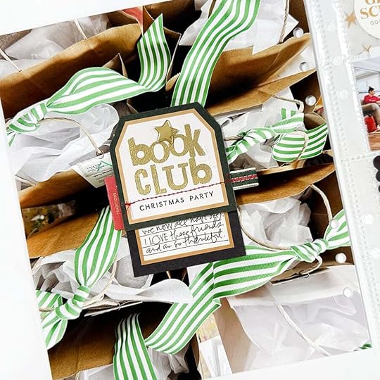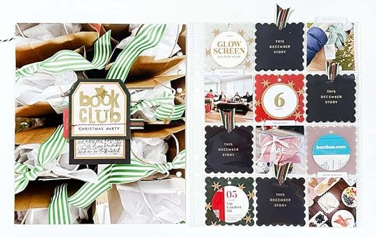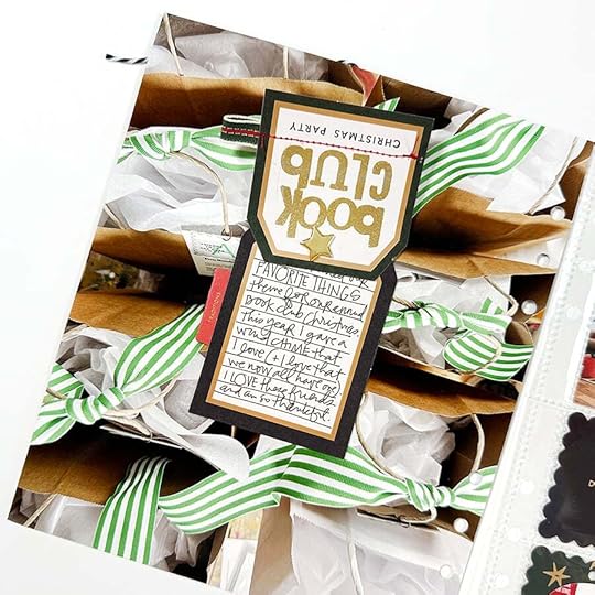 We had our annual Book Club Christmas gathering this morning so that became my story for today. I'm pairing a full page photo with two tags layered on top (one for the title and one for the journaling) with a 2x2 page protector. Inside the page protector I've got a bunch of the 2x2 scalloped squares and some photos from today's get together.