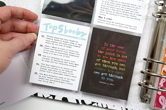 Prompt cards from the Read kit help capture some details about how I read and my top 5 book picks for this year. I paired them with a reading selfie and the colourful quote card also from the Read kit.