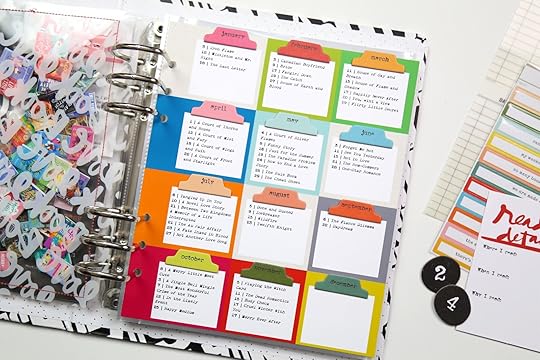 Books by the month – I borrowed a digital paper from the recent “Fan” Story Kit and made a few modifications (removed the titles from each box and moved the page margin to the left). I used the 12 squares to write which books I had read for each month and added the colourful month tabs from the Read kit to the top of each square. December’s blank at the moment, because we’re not done with it yet. At the end of the month, I’ll print my titles onto clear sticker paper to finish the last box.