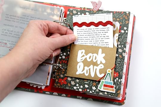 Mini book shaker pocket – THIS. IS. AWESOME! It turned out better than I could have imagined!! I usually track my reading for through Goodreads, which came in very handy for putting this spread together. It was also the source of the book cover images for all of my books this year. I made them all mini and printed the images onto glossy vinyl sticker paper. I cut out each cover and stuck it to thin white craft foam to make the miniature books.