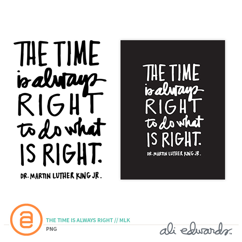 I hand-wrote the MLK quote and saved it for you as a 3x4 PNG download here (includes both black with white type & words with a transparent background).