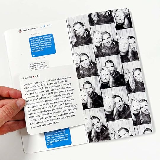 For this project I'm documenting more about my relationship with Aaron. For the "How We Met" prompt I decided to dive back into my Facebook archives and find the first messages between us. I took screenshots of the messages and then arranged them on a canvas in Photoshop (4.25 in x 8.25 in) and printed here at home.