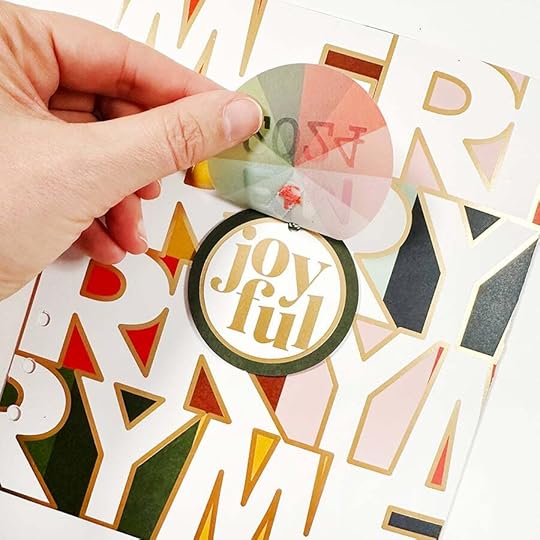 There all kinds of fun things from the collection you can add on top of the pattern paper. I chose a circle tag from the Main Kit as my base embellishment. On top of the that I used a 2 inch circle punch to cut out the "joyful" letter press portion of one of the 4x6 letter press cards from the Specialty Card Pack.