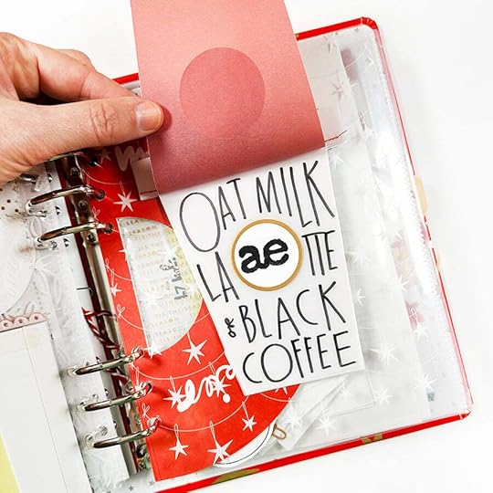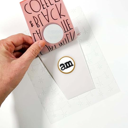One of the things I love to do is look through pieces from this year's collection and identify ones that can act as a jumping off point for a story. This large vellum coffee cup die cut said, "Use me to tell the story of what drink people like to order in December." Ah yeah! Let's do it!