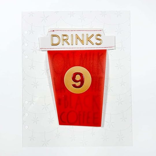 Along the top of the cup I used the gold puffy alpha to add the word "drinks" and the number nine sticker is from the 2024 Advent Calendar.