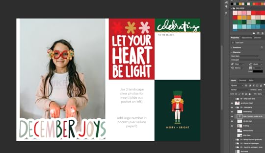 Last year was all about colorful fun and as you can see here, some of that is seeping into 2024. Part of this reason could be that I often design the next year's product collection in December (meaning last year while I was working on my 2023 album I was also designing pieces for 2024). If you aren't a fan of all that color for the holidays you can easily substitute that "merry" paper for a different pattern paper from the Main Kit or 10x8 Paper Pack (or another paper of your own choosing). This colorful "merry" paper is from the 10x8 Paper Pack. Heads up that I do use the same design in the red/white color scheme for an element in one of my Product Play projects.