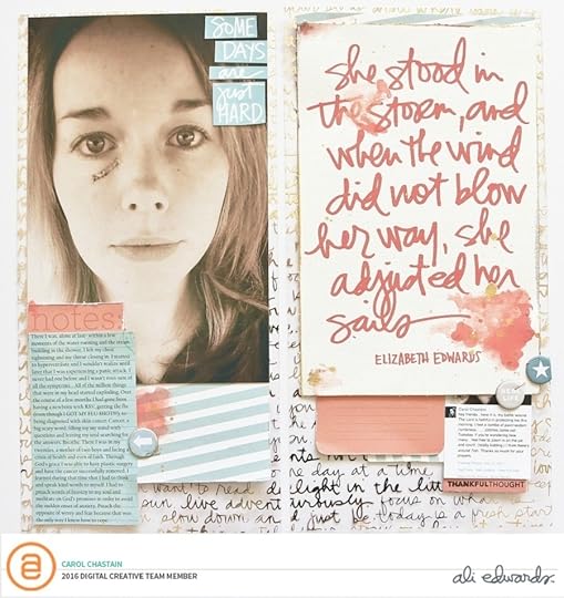 "Evening" is a digital file from the AM/PM Digital set and was traced and cut using the Silhouette. This set would also be great for telling stories during Week In The Life™. The "she stood in the storm" card is from this month's Tough Story Kit™.