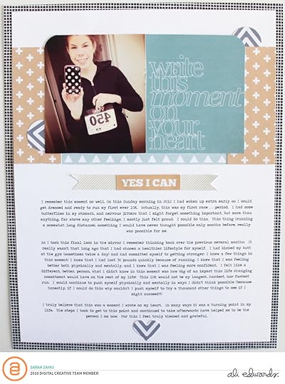 Instagram. It made it so easy to do it right then and then be able to copy and paste into both my blog post and then onto these two 4x6 cards. As you can see, I created some space within my journaling to hold the #1 and #2 chipboard circles. I used Helvetica Condensed Bold for the times and Remington Noiseless for my journaling.