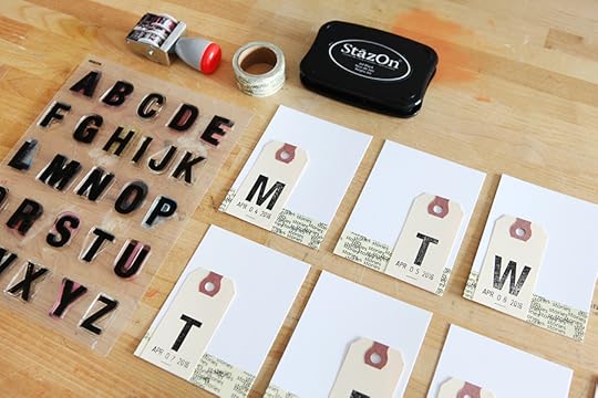 SUPPLIESMixed Alpha StampSans Serif Alpha stamp setStories Washi TapeSmall Manila TagsBlack Staz Onrolling date stampAED SlickWriter PenAED Precision Pen