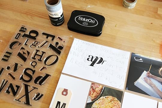 Mixed Alpha Stamp + Black Staz On + rolling date stamp + a bit of Anna's writing = super simple title card.