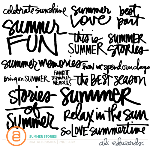 Here's a look at this week's inspiration from the AE Digital Creative Team using designs from my Summer Stories word art set. Remember, many of these awesome women are paper scrapbookers who use these products in conjunction with their paper projects.