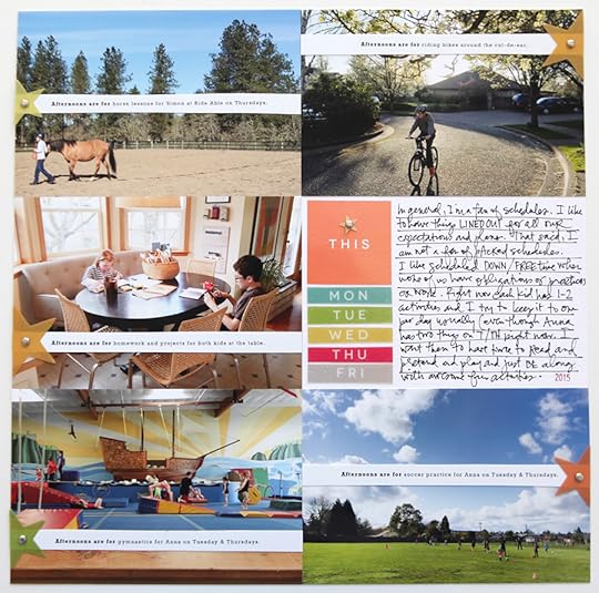 Afternoons are for horse lessons for Simon at RideAble on Thursdays. // Afternoons are for riding bikes around the cul-de-sac. // Afternoons are for homework and projects for both kids around the table. // Afternoons are for gymnastics for Anna on Tuesday & Thursdays. // Afternoons are for soccer practice for Anna on Tuesday & Thursdays.