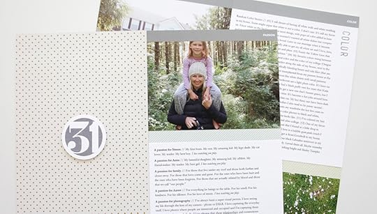 I'll be combining these new stories in my original 31 Things 12 inch x 12 inch album. Each story will have a home on a 6 inch x 12 inch page (templates provided in class for either full digital scrapbooking or for writing and printing via journal templates sized to fit) and you can choose to add two together to create a full 12 inch x 12 inch page (that's my plan as you'll see below). You also have the option of simply use the prompts as jumping off points for blog posts, personal journaling, Project Life® inserts, etc.