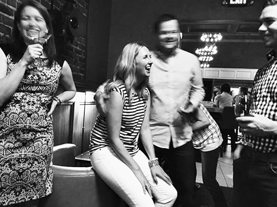Aaron snapped this photo of me last weekend as we were celebrating my friend Todd's 40th Birthday (that's him there next to me). I've known Todd since my very first week at college - I was 17 which means we've been friends now for more than 20 years. He's part of a group of friends from college who all live here in town. He gives good hugs and laughs easily - always has.