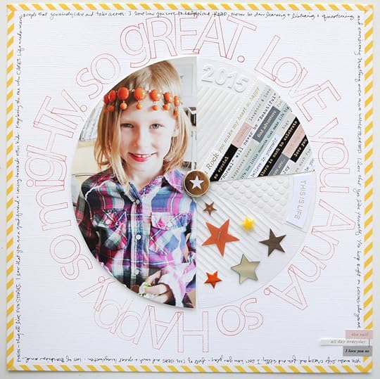 Today I wanted to share a layout I put together yesterday that uses a bunch of things that have been sitting on my table. I actually love that concept as a challenge - what's on your table right now and how can you bring it together into a layout. When was the last time you approached a story that way?